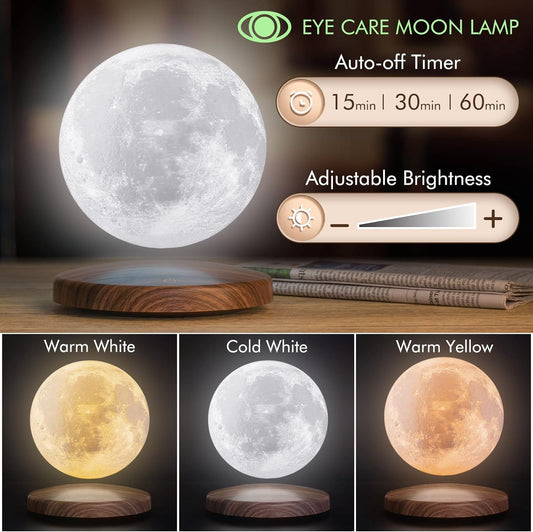 Levitating Moon Lamp 3D Printing LED Magnetic Floating Moon Light with 3 Colors Modes, Spinning in Air Freely and Best Birthday Gifts, Night Light for Home Office, Room Decor (3 Colors)